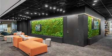 Quiet Earth organically preserved Moss Walls bring a stunning customized green space indoors, while controlling room acoustics. Quiet Earth Moss is all natural with no maintenance helps create a healthier environment for employees. Quiet Earth Moss is a division of Ayrsonics custom acoustic solutions.